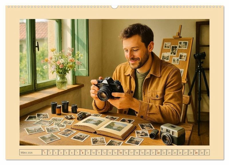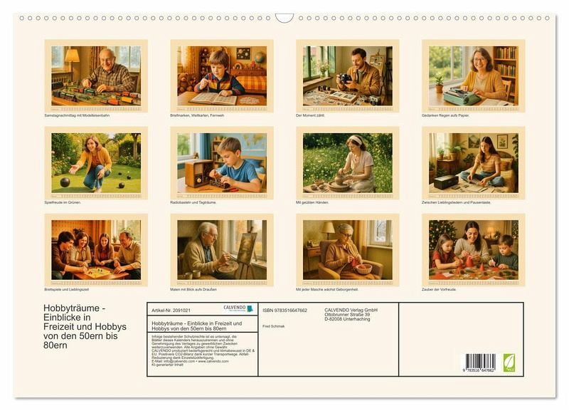 Dieser nostalgische Kalender lädt ein zu einer einzigartigen Zeitreise in die Welt der Freizeitträume der 50er bis 80er Jahre. Vom analogen Fotografieren über das Basteln bis hin zum Töpfern. Jedes Monatsbild zeigt ein ikonisches Hobby, das mit Hilfe künstlicher Intelligenz detailreich und atmosphärisch neu zum Leben erweckt wurde. Ein liebevoll gestalteter Blick zurück auf kreative Leidenschaften vergangener Jahrzehnte. Ideal für Vintage-Fans, Träumerinnen und Freunde besonderer Motive.