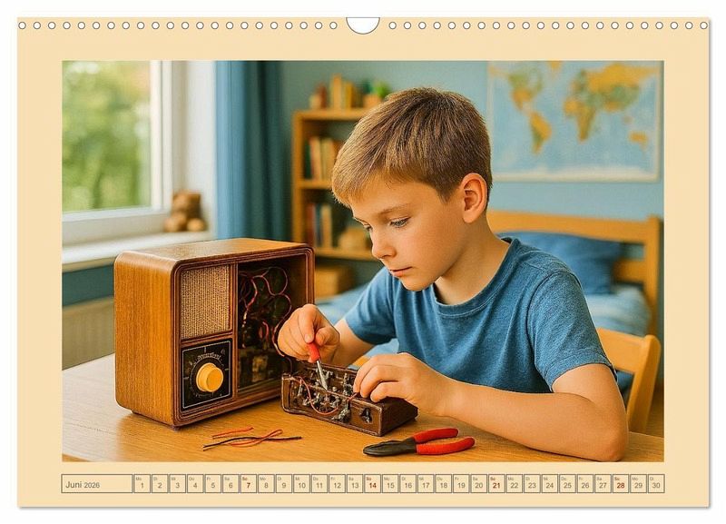 Dieser nostalgische Kalender lädt ein zu einer einzigartigen Zeitreise in die Welt der Freizeitträume der 50er bis 80er Jahre. Vom analogen Fotografieren über das Basteln bis hin zum Töpfern. Jedes Monatsbild zeigt ein ikonisches Hobby, das mit Hilfe künstlicher Intelligenz detailreich und atmosphärisch neu zum Leben erweckt wurde. Ein liebevoll gestalteter Blick zurück auf kreative Leidenschaften vergangener Jahrzehnte. Ideal für Vintage-Fans, Träumerinnen und Freunde besonderer Motive.
