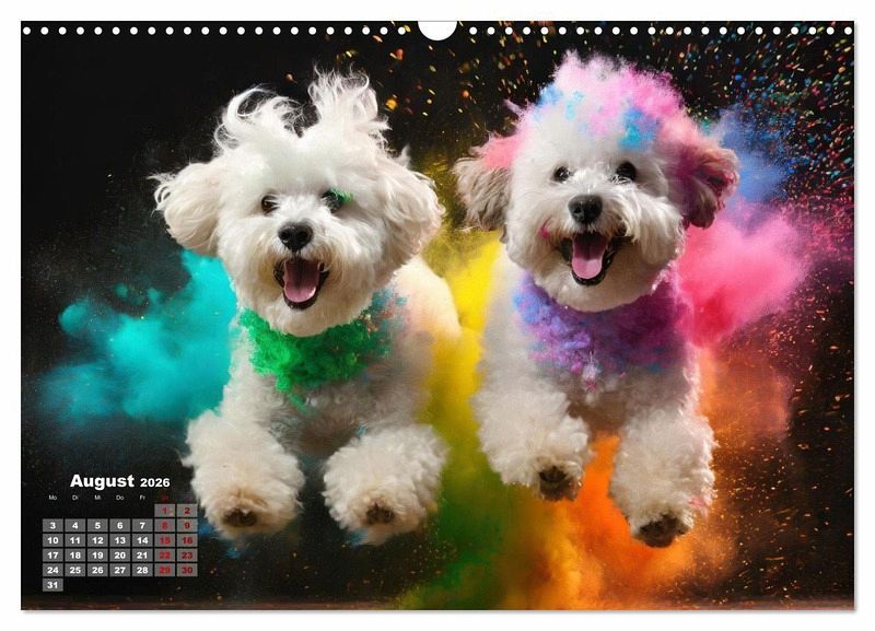 Tauchen Sie ein in ein Jahr voller Farbe und Freude mit diesen exklusiven KI generierten Bildern, die die Energie und das Temperament unserer vierbeinigen Freunde einfangen. Jeder Monat präsentiert eine explosive Mischung aus Action und Farben, die durch das lebendige Holi Pulver zum Leben erweckt wird.