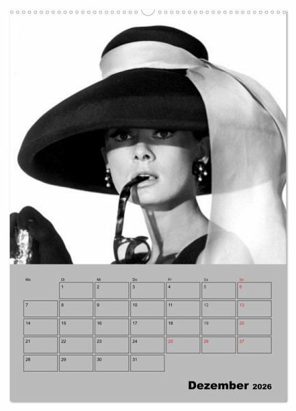 Mit ihrer eleganten Erscheinung und Mode prägte sie das Frauenbild der 1950er und 1960er Jahre entscheidend mit. Audrey Hepburn stand mit den größten Stars ihrer Epoche vor der Kamera. Sie spielte im populärsten Filmklassiker "Frühstück bei Tiffany", 1961 die Hauptrolle. Dieser Planer bringt ein wenig Nostalgie aus der goldenen Filmepoche in ihr Heim.