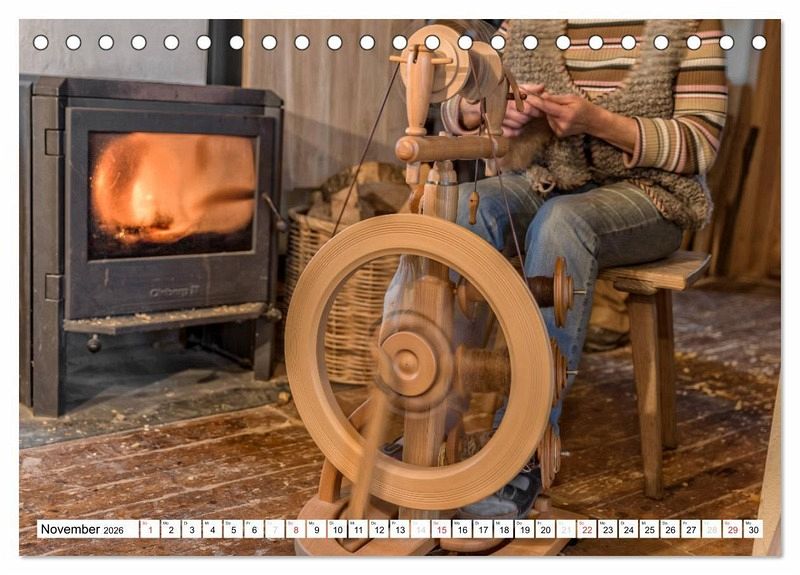 November: Holzspinnrad aus vielen Einzelteilen gefertigt