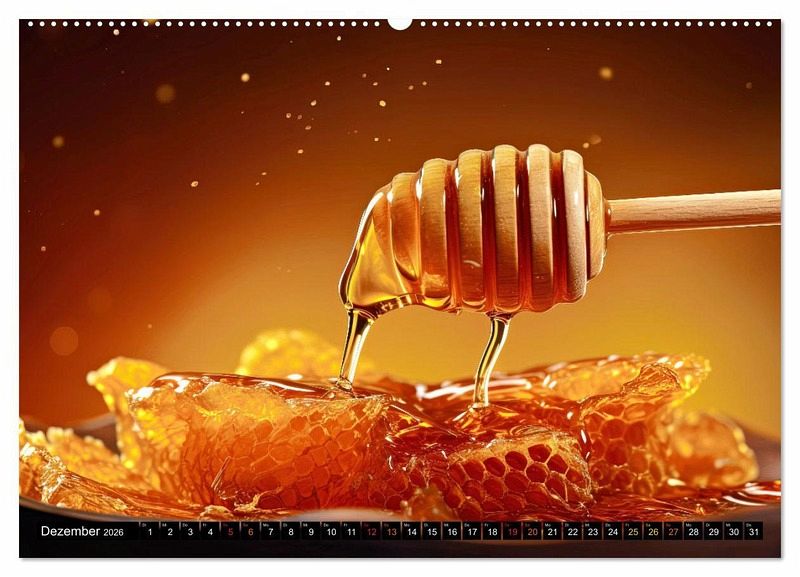 Entdecke die süße Verführung von flüssigem Gold - HONIG. Natürlich, köstlich und vielseitig verwendbar. Tauche ein in den unvergleichlichen Geschmack der Natur und genieße puren Genuss mit jedem Löffel. HONIG - das goldene Elixier für deine Sinne! Dieser Kalender wurde mit Unterstützung der KI erstellt.