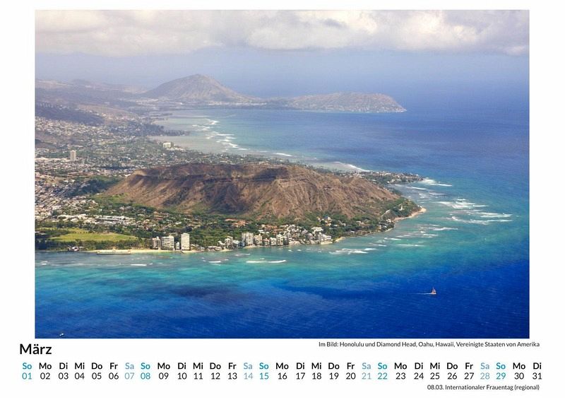 Entdecken Sie die faszinierende Schönheit von Honolulu mit unserem exklusiven Wandkalender! Lassen Sie sich Monat für Monat von 12 atemberaubenden Motiven der hawaiianischen Hauptstadt verzaubern - von traumhaften Stränden bis hin zu beeindruckenden Landschaften. Gedruckt auf hochwertigem, lichtbeständigem Bilderdruckpapier, bringt dieser Kalender die tropische Magie direkt in Ihr Zuhause. Nachhaltigkeit liegt uns am Herzen: Unsere Kalender werden in Deutschland auf FSC-zertifiziertem Papier produziert. Perfekt als Geschenk oder für die eigene Wand - holen Sie sich ein Stück Paradies nach Hause und genießen Sie das ganze Jahr über die exotische Atmosphäre Honolulus! Hochwertig Erleben Sie ein Jahr voller Eleganz mit unserem Premium-Fotokalender. Jedes der 12 Motive ist auf hochwertigem, lichtbeständigem Bilderdruckpapier gedruckt, um die Lebendigkeit jedes Bildes zu bewahren. Die robuste Spiralbindung gewährleistet Langlebigkeit und einfache Handhabung. Nachhaltig Unser Engagement für die Umwelt spiegelt sich in jedem Exemplar wider. Durch die Produktion auf Abruf reduzieren wir signifikant unseren Abfall. Wir verwenden ausschließlich umweltfreundliches, FSC-zertifiziertes Papier. Stolz gefertigt in Deutschland, achten wir bei unserer Logistik auf Klimaschutz, um unseren ökologischen Fußabdruck zu minimieren. Das ideale Geschenk Dieser Kalender ist das perfekte Präsent für jeden Anlass - ob Weihnachten, Geburtstage oder einfach als liebevolle Aufmerksamkeit zwischendurch. Geeignet für Freunde, Familie, Kinder und Erwachsene gleichermaßen, bereichert er jedes Zuhause mit seiner Vielfalt und Schönheit, unabhängig vom Alter der Beschenkten.