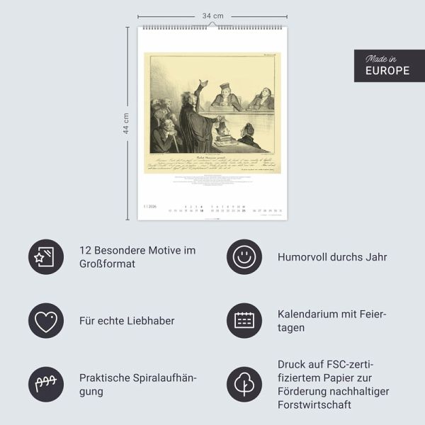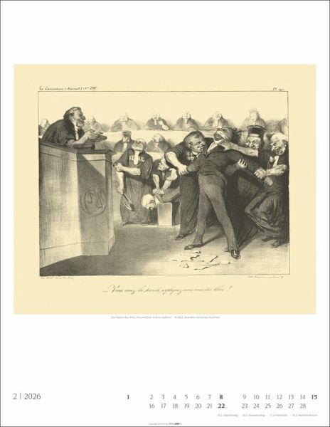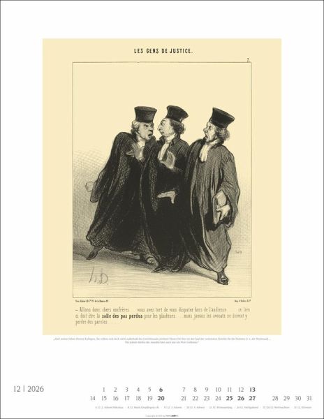- Honore Dáumiers Les Gens des Justice: lustiger Kalender mit Karikaturen und Graphiken des französischen Illustrators- Bildhafte Anekdoten des juristischen Alltags: Monatskalender mit Kalendarium und Feiertagen im Format 34×44 cm - Sozialkritisch, politisch, humorvoll: Kunst-Wandkalender 2026 mit Meisterwerken des bissigen Witzes von dem bekannten Vertreter des Realismus- Mit feiner Ironie und spitzer Feder: Daumier-Kalender mit 12 Zeichnungen des berühmten Karikaturisten aus dem 19. Jahrhundert- Passende Geschenke für Kunstliebhaber:innen und Fans der gepflegten Satire: die humorvollen Kalender von Weingarten im Athesia Kalenderverlag