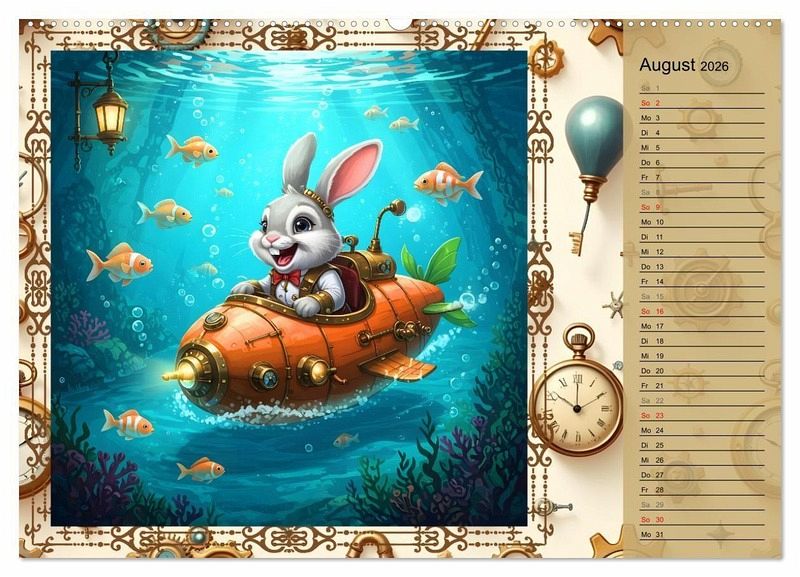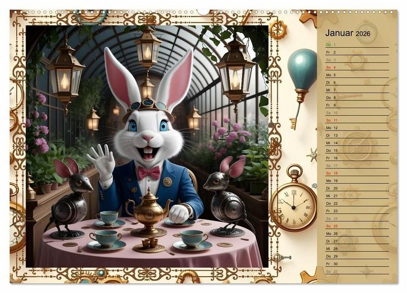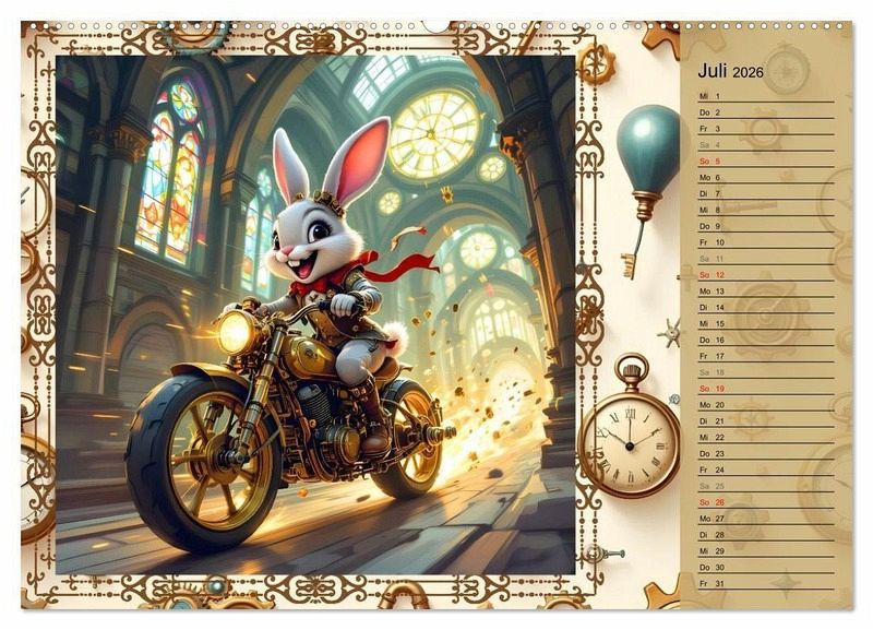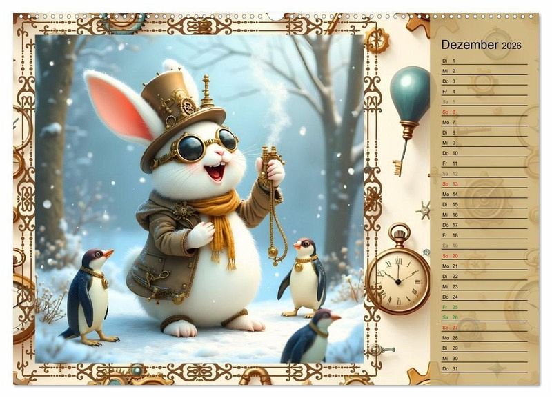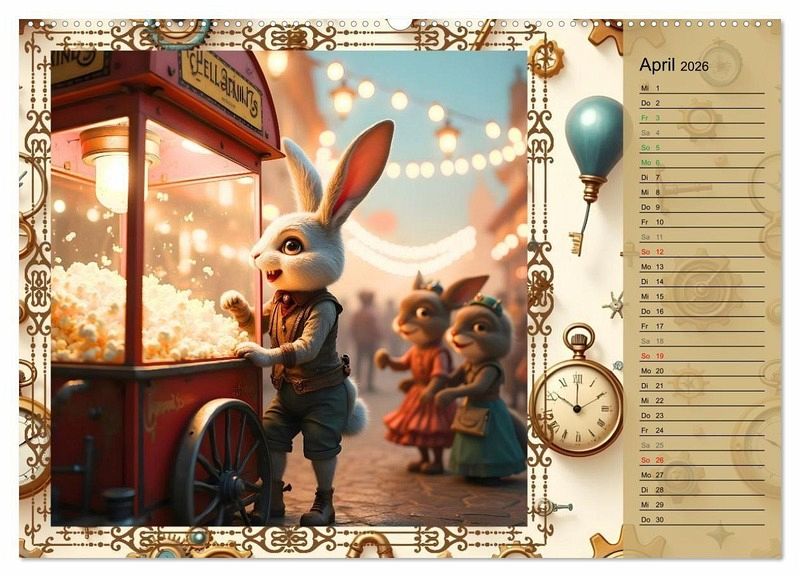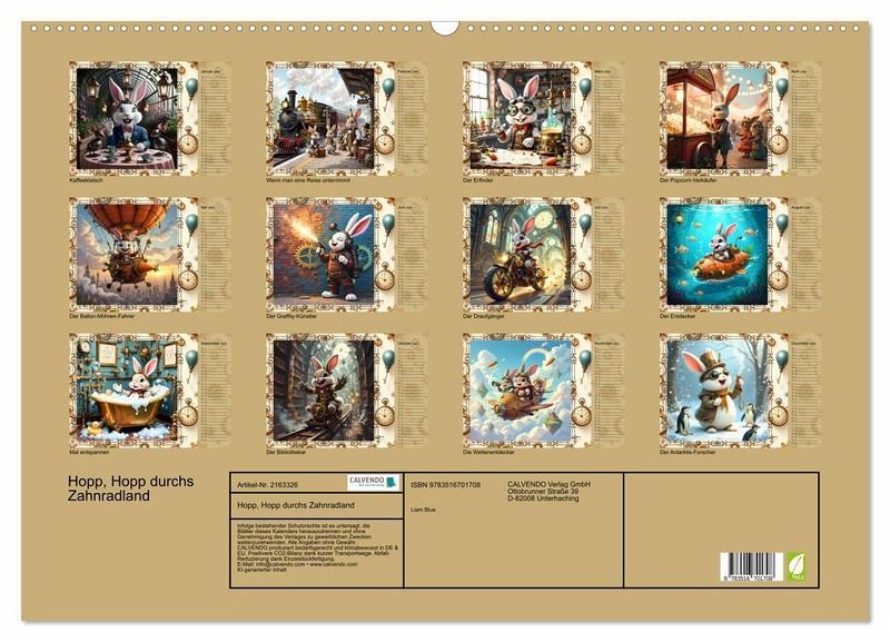 Willkommen in Hopp, Hopp durchs Zahnradland - dem Kinderkalender voller Erfindergeist, Abenteuer und lustiger Hasen-Freunde! Begleite den witzigen Steampunk-Hasen durch ein ganzes Jahr voller dampfender Maschinen, knallbunter Luftballons, verrückter Erfindungen und herzerwärmender Freundschaft. Die liebevoll gestalteten Motive verbinden Fantasie, Technik und jede Menge Spaß - ein echtes Highlight für Kinderzimmer und kleine Tüftler. Mit viel Witz und Charme lädt der KI generierte Kalender zum Staunen, Lachen und Entdecken ein.