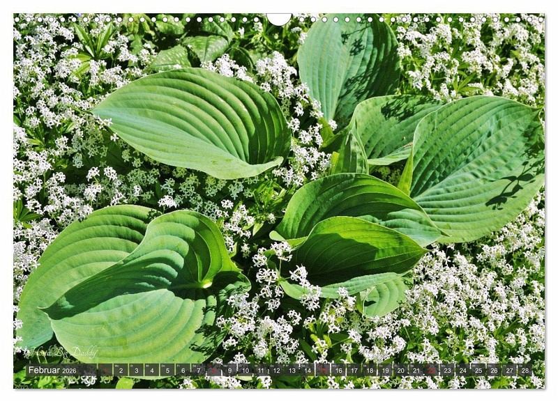 Februar: Hosta 'Big Daddy' umgeben von Waldmeister