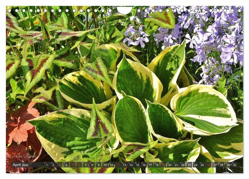 April: Hosta 'Patriot' mit Knöterich, Waldphlox und Heuchera