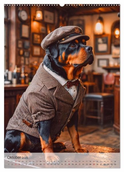 Ein stylischer KI Kalender, der trendbewusste Hunde in angesagten Outfits und coolen Posen zeigt - von Streetwear bis High Fashion, immer mit einer Prise Charme und Humor.