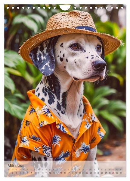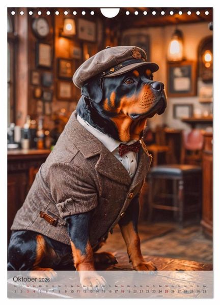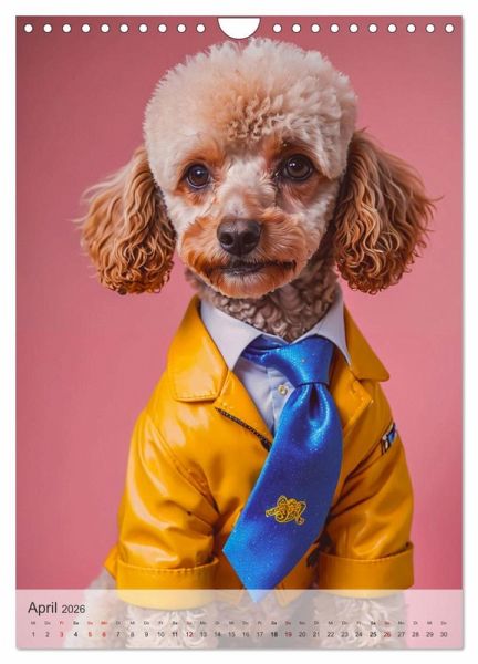Ein stylischer KI Kalender, der trendbewusste Hunde in angesagten Outfits und coolen Posen zeigt - von Streetwear bis High Fashion, immer mit einer Prise Charme und Humor.