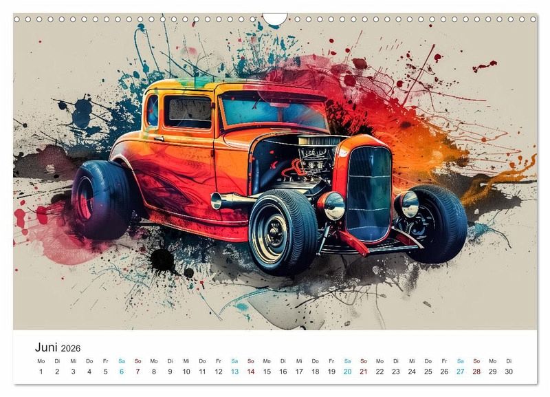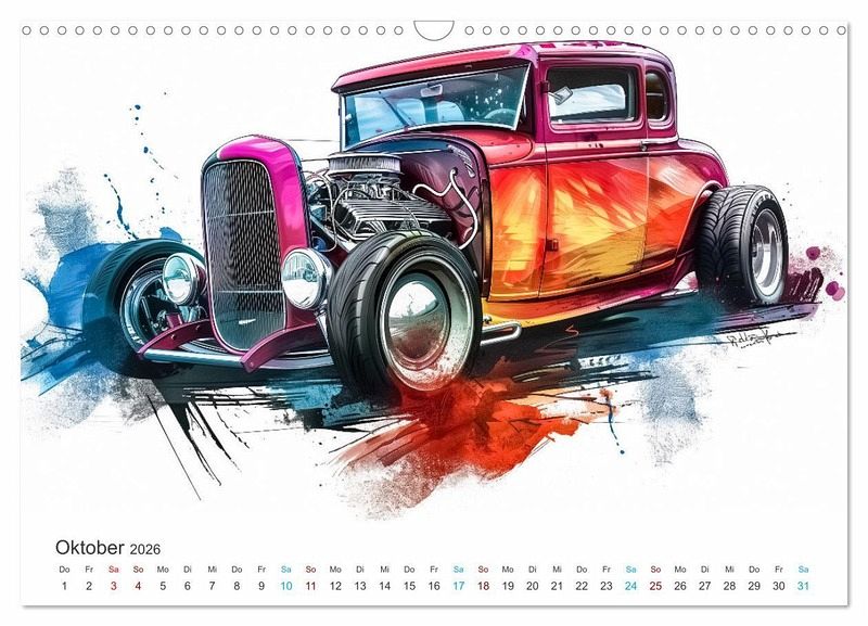Entdecken Sie die wilde Seite der Straße mit unseren legendären Hot Road Oldtimern! Diese kraftvollen Symbole der Freiheit verkörpern das ultimative Fahrerlebnis, das Adrenalin pur verspricht. Mit ihren markanten Designs und donnernden Motoren fesseln unsere Hot Rods die Blicke und lassen Herzen höher schlagen. Jedes Fahrzeug ist ein einzigartiges Meisterwerk, das die unverwechselbare Kombination aus Nostalgie und unbändiger Kraft verkörpert. Alle hier gezeigten Bilder wurden mit Sorgfalt, Liebe und mit Hilfe einer KI generiert. Abschließend werden sie mit Bildbearbeitungsprogrammen überarbeitet und in den Kalender eingefügt.