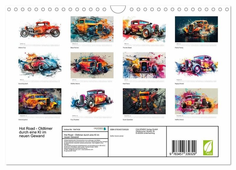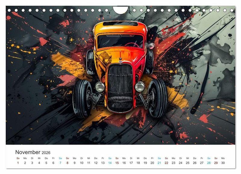 Entdecken Sie die wilde Seite der Straße mit unseren legendären Hot Road Oldtimern! Diese kraftvollen Symbole der Freiheit verkörpern das ultimative Fahrerlebnis, das Adrenalin pur verspricht. Mit ihren markanten Designs und donnernden Motoren fesseln unsere Hot Rods die Blicke und lassen Herzen höher schlagen. Jedes Fahrzeug ist ein einzigartiges Meisterwerk, das die unverwechselbare Kombination aus Nostalgie und unbändiger Kraft verkörpert. Alle hier gezeigten Bilder wurden mit Sorgfalt, Liebe und mit Hilfe einer KI generiert. Abschließend werden sie mit Bildbearbeitungsprogrammen überarbeitet und in den Kalender eingefügt.
