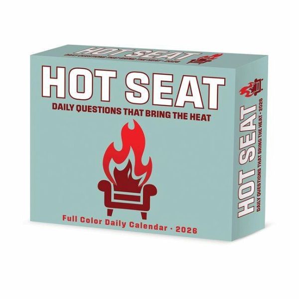 ROLLICKING ROAST - Feel the burn with the 2026 Hot Seat Box Calendar. This fiery daily calendar serves up sizzling questions that spark conversations, ignite laughter, and turn up the heat of competition. Whether you're feeling spicy, looking to roast your friends or grill your family, these bold prompts will guarantee a rollicking good time.