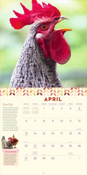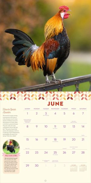 Fowl language. Adapted from backyard chicken keeper Melissa Caughey's bestselling book How to Speak Chicken, this delightful calendar combines practical advice for communicating with your flock, fascinating trivia, and gorgeous portraits of different breeds. Did you know that chickens can predict where leaping bugs will land? Instead of catching them midair, they run to the estimated place of impact. Hear your chickens gently calling "doh doh doh" as they roost at the end of the day? This is how they check in with each other and say good night. New plastic-free packaging!