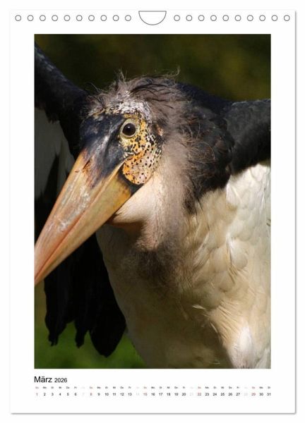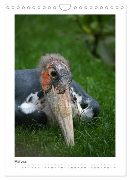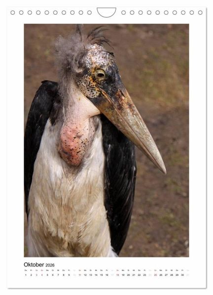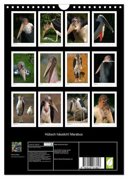 Nackter Hals, schlabbernder Kehlsack, zerzauste Kopfbefiederung - nein, eine klassische Schönheit ist so ein Marabu wahrlich nicht. Er ist aber so hässlich, dass er schon wieder schön ist! Und dieser Kalender zeigt in wunderschönen Farbfotos die interessanten Seiten dieses Charaktervogels.
