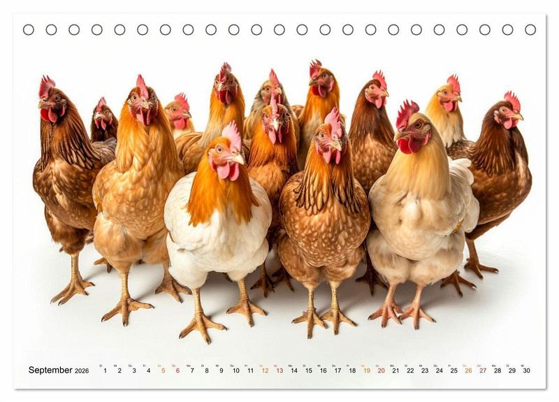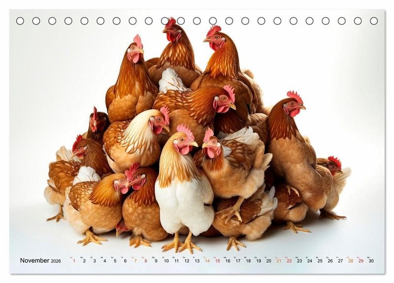 Entdecken Sie mit diesem Kalender die faszinierende Welt der Hühner in verschiedensten Größen und Farben. Erfreuen Sie sich an dem Anblick dieses bunten Federviehs, wie sie herumstolzieren und sich als lebhafte Hühnerschar präsentieren. Der Fotokünstler Peter Roder hat liebenswerte KI-Bilder gestaltet und zusammengestellt, die nicht nur alle Tierliebhaber und Liebhaberinnen begeistern werden.