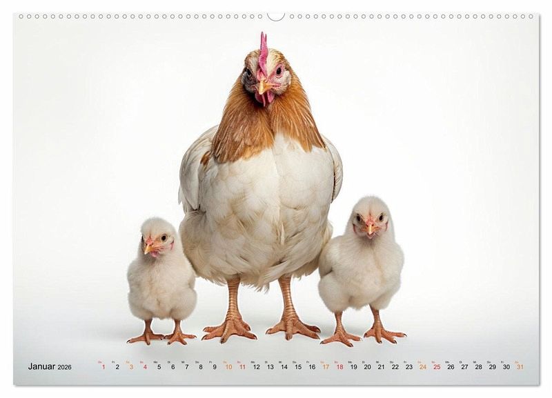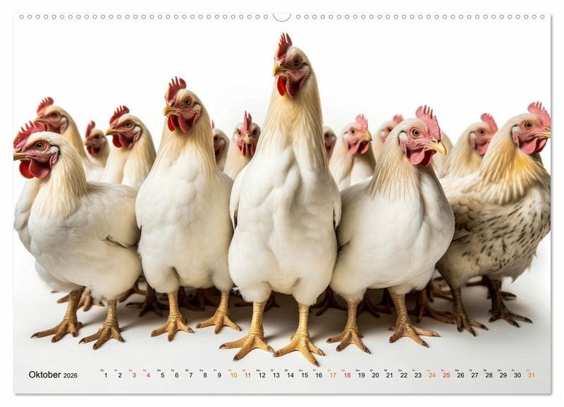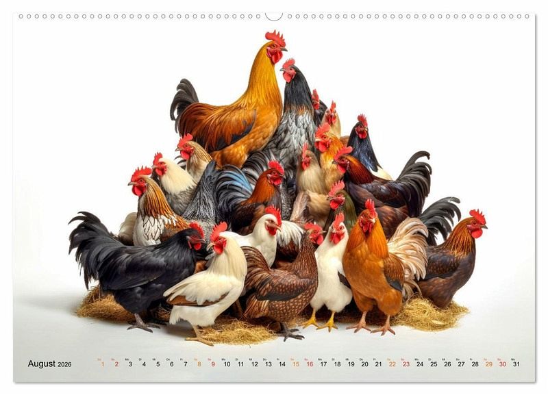 Entdecken Sie mit diesem Kalender die faszinierende Welt der Hühner in verschiedensten Größen und Farben. Erfreuen Sie sich an dem Anblick dieses bunten Federviehs, wie sie herumstolzieren und sich als lebhafte Hühnerschar präsentieren. Der Fotokünstler Peter Roder hat liebenswerte KI-Bilder gestaltet und zusammengestellt, die nicht nur alle Tierliebhaber und Liebhaberinnen begeistern werden.