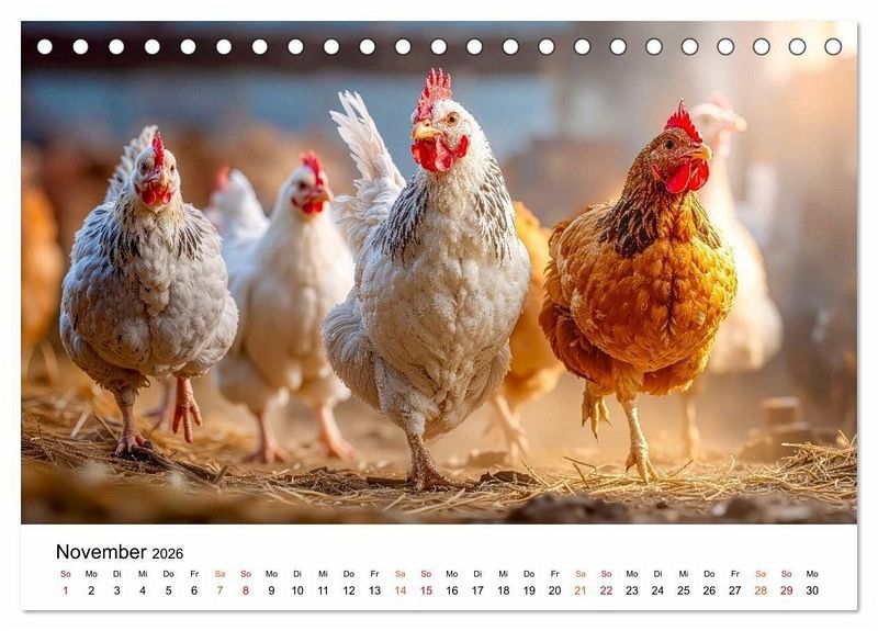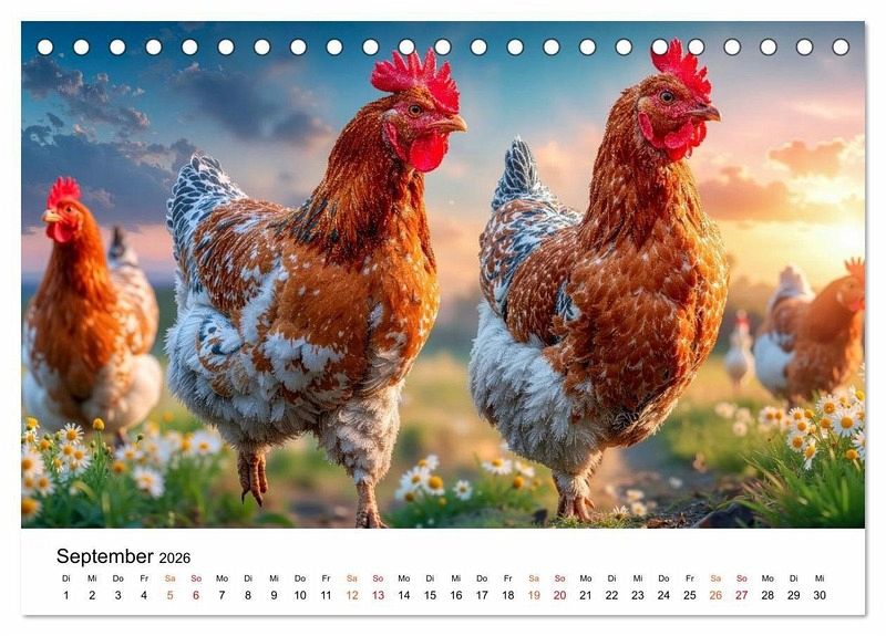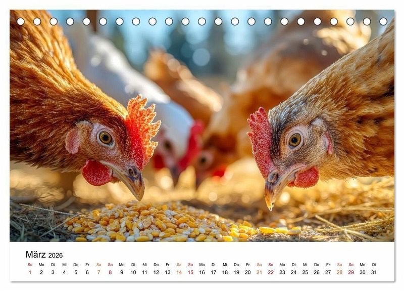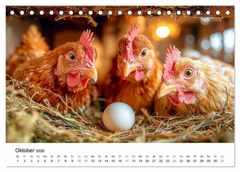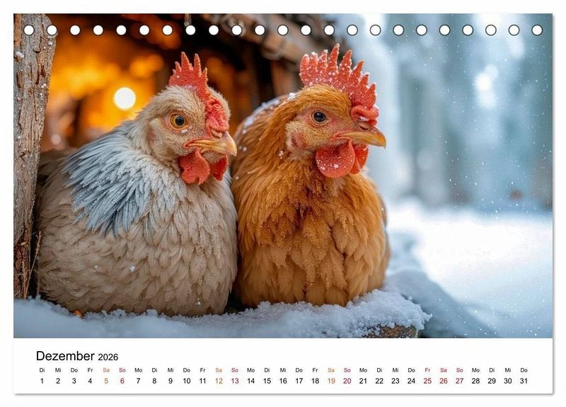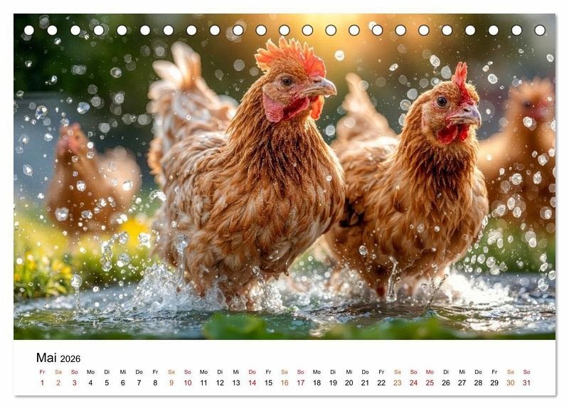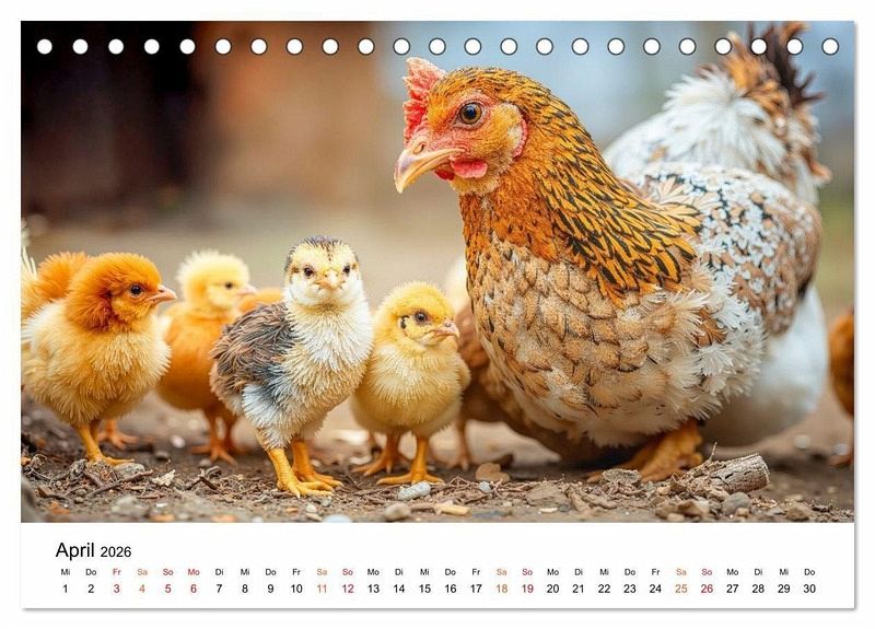 Erleben Sie die heitere Welt glücklicher Hühner, die ihr Leben in vollen Zügen genießen - frei und unbeschwert auf dem Bauernhof. Monat für Monat begleiten Sie diese charmanten Gefiederten durch die Jahreszeiten. Ob fröhliche Küken-Ausflüge über den Hof oder ein neugieriges Huhn beim Plausch mit den Kühen im Stall. Im Sonnenschein, Regen und auch Schnee ist dieses bunte Federvieh quietschvergnügt unterwegs. Gestaltet mit dem Auge fürs Detail sind diese Bilder ein herzerwärmender Blick auf das einfache Glück, wobei die grafische Umsetzung im Zusammenspiel klassischer Gestaltung und ausgewählter KI-basierter Methoden erfolgte. Ein perfektes Geschenk für alle Tierfreunde, Naturgenießer und Landliebhaber.