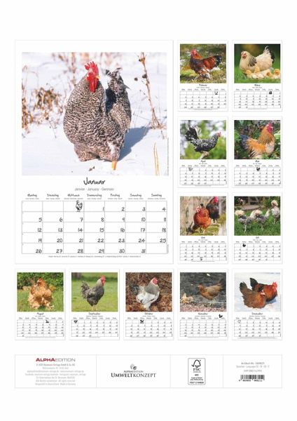 - Inhalt: 12 wunderschöne Motive mit Hühnern in verschiedenen Lebenssituationen und Jahreszeiten