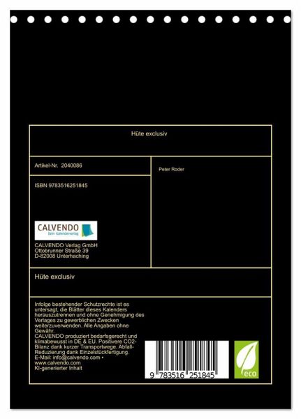 QUALITÄT - Hochwertiger Fotokalender mit 12 wunderschönen Motiven auf lichtbeständigem Bilderdruckpapier, robuste Spiralbindung.NACHHALTIG - deutliche Abfallreduzierung durch bedarfsgerechte Einzelstückfertigung, umweltfreundliches FSC-zertifiziertes Papier, Produktion in Deutschland, klimabewusste Logistik.PERFEKTES GESCHENK - Kalender für Freunde und Familie, für Kinder und Erwachsene, jung und alt, zu Weihnachten, Geburtstag oder zwischendurch.VIELFALT - Bildkalender in verschiedenen Formaten, z.B. DIN A5, DIN A4, DIN A3 sowie DIN A2. Ob Naturmotiv, Gemälde oder Fotos, ideal für ein persönliches Wohlfühlambiente.Hüte, die die Schönheit des Gesichts hervorheben. von Autor(in): Peter Roder