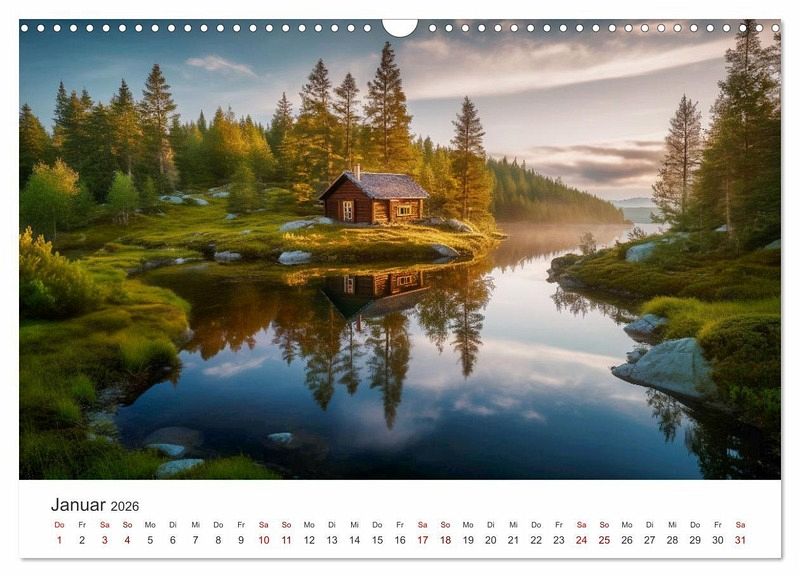 Jeder Monat offenbart eine neue Kreation der KI, die die raue Wildnis Norwegens auf faszinierende Weise einfängt. Spüre die Kälte des Winters, die Frische des Frühlings und die Wärme des Sommers in jedem detailverliebten Bild. Diese Hütten, eingebettet in die Natur, erzählen Geschichten von Abenteuerlust und Freiheit.