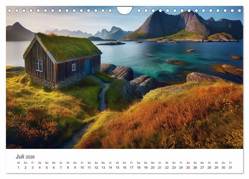 Jeder Monat offenbart eine neue Kreation der KI, die die raue Wildnis Norwegens auf faszinierende Weise einfängt. Spüre die Kälte des Winters, die Frische des Frühlings und die Wärme des Sommers in jedem detailverliebten Bild. Diese Hütten, eingebettet in die Natur, erzählen Geschichten von Abenteuerlust und Freiheit.