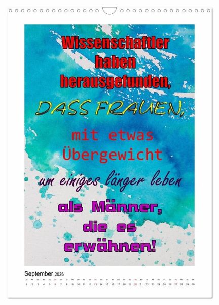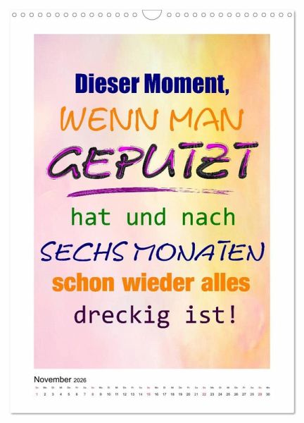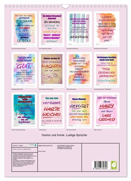 Witzige Sprüche sind Kult! Sarkastisch, frech, ironisch, sehr originell und typographisch gut gestaltet. Jeder Monat ist bunt gehalten und ein echter Hingucker. Ein Kalender der überall für gute Laune und jede Menge Schmunzeln sorgen wird.