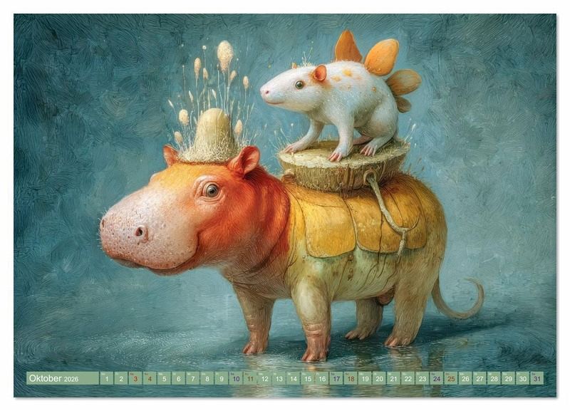Entdecke unsere humorvollen Tieranhäufungen voller Fantasie. In diesen KI-generierten Kunstwerken vereinen sich echte Tiere und fantastische Kreaturen zu einer bunten, detailreichen Tierparade. Ob niedliche Tiere, die auf den Rücken größerer Artgenossen sitzen, oder lustige Gruppenfotos, hier steckt überall Humor und Überraschung drin. Mit lebendigen Farben und witzigen Details laden die Werke dazu ein, immer wieder Neues zu entdecken. Lass dich von dieser charmanten Tierwelt begeistern und bring Spaß und Fantasie in deinen Alltag.
