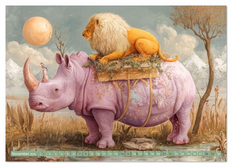 November: Löwe und Nashorn