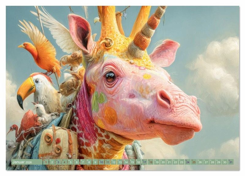 Januar: Pinkfarbene Fantasiegiraffe