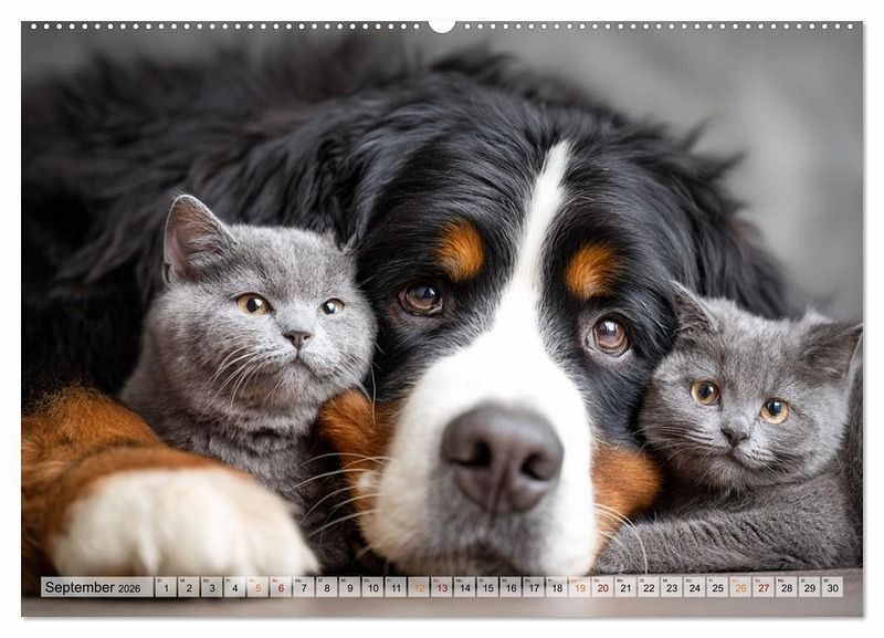 Ein Blick, zwei Herzen, unzertrennlich. Dieser Wandkalender bringt dir Monat für Monat die pure Wärme tierischer Freundschaft nach Hause. Ob fürs Wohnzimmer, Büro oder Kinderzimmer: Das liebevolle Motiv von Hund und Katze lässt Herzen höher schlagen und zaubert jedem ein Lächeln ins Gesicht. Perfekt für Tierfreunde, die das Besondere suchen. Hochwertiger Druck, liebevolles Design, zwölf Motive voller Gefühl. Verschenke Nähe, Geborgenheit und stille Momente, für jeden Tag im Jahr. erstellt wurden die Illustrationen mit Ki und Photoshop.