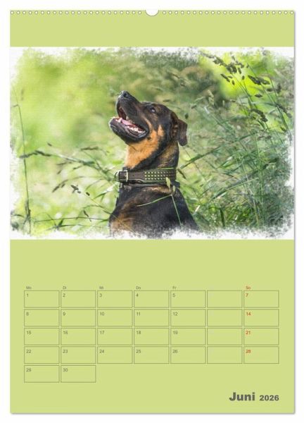 13 verschiedene, zum Aquarell weiterbearbeitete, Hundeportraits erfreuen Sie das ganze Jahr hindurch. Quer durch alle Rassen haben hier die verschiedensten Hunde Ihren Platz im Kalender gefunden...von den ganz Kleinen, wie Havaneser oder Beagle über die Mittleren, wie Collie und Magyar Vizsla bis hin zu den ganz Großen, wie Briard und Mastin Espanol. Alle Bilde haben dabei eins gemeinsam... sie zeigen unsere geliebten Fellnasen, als ganz besonderen Blickfang. Machen Sie sich oder einem lieben Hundefreund ein tolles Geschenk mit diesem außergewöhnlichen Kalender.