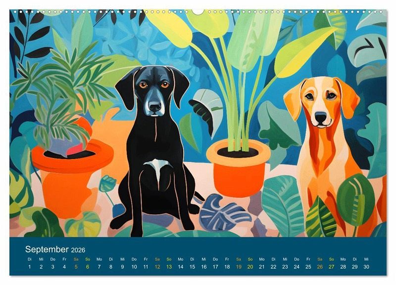 September: Hunde mit Zimmerpflanzen