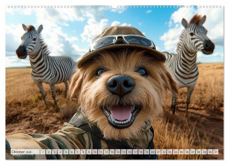 Bereit für ein Jahr voller tierischer Abenteuer? Entdecke Hunde voller Lebensfreude. Ob wild, verspielt oder einfach charmant, jeder Monat überrascht mit einem neuen Outdoor-Selfie, das dich zum Lächeln bringt. Faszinierende Kulissen und spannende Perspektiven machen diesen Kalender zum Highlight an jeder Wand. Für Hundefans und alle, die das Außergewöhnliche lieben. Die Szenen wurden liebevoll und fantasievoll mit künstlicher Intelligenz erschaffen.