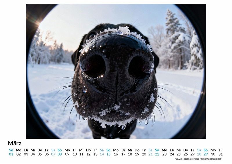 Ganz nah dran, so nah, dass die feuchte Hundenase die Linse berührt und die Welt dahinter zu einem lustigen Zerrbild wird. Der Kalender "Hunde-Selfies" fängt genau diesen Moment ein. Er präsentiert eine Sammlung ungewöhnlicher Porträts, bei denen neugierige Vierbeiner die Kamera scheinbar selbst in die Pfote genommen haben. Dieser Kalender ist eine ausgezeichnete Wahl: Für alle, die Hunde und ihren manchmal unbeholfenen Charme lieben. Für Menschen, die eine tägliche Dosis Humor zu schätzen wissen. Für Suchende nach einem originellen Geschenk, das garantiert für ein Schmunzeln sorgt. Jeder Monat enthüllt eine neue, extreme Nahaufnahme. Glänzende Nasen, einzelne Barthaare und große, fragende Augen dominieren das Bild und schaffen komische Proportionen. Die Motive entstanden durch das Zusammenspiel von kreativen Ideen und digitalen Prozessen, die diese einzigartigen Ansichten berechnet und visualisiert haben. Das Ergebnis ist eine Serie von Bildern, die so in der Realität kaum einzufangen wären. Was dieser Kalender bietet: 12 Monatsmotive mit lustigen Hundenasen. Ein Wandkalender mit praktischem Kalendarium. Ein Jahr voller amüsanter Anblicke und guter Laune. Der Kalender "Hunde-Selfies" ist eine Hommage an die pure Neugier und den Witz unserer vierbeinigen Freunde, festgehalten aus einer Perspektive, die zum Lachen anregt. Es lohnt sich, einen Blick auf die Monatsansichten zu werfen und sich von den charmanten Schnauzen überzeugen zu lassen.