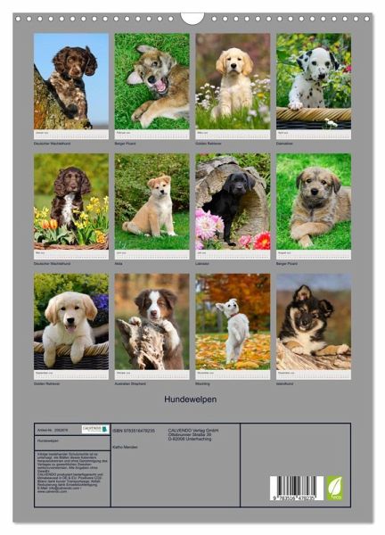QUALITÄT - Hochwertiger Fotokalender mit 12 wunderschönen Motiven auf lichtbeständigem Bilderdruckpapier, robuste Spiralbindung mit Aufhängebügel.NACHHALTIG - deutliche Abfallreduzierung durch bedarfsgerechte Einzelstückfertigung, umweltfreundliches FSC-zertifiziertes Papier, Produktion in Deutschland, klimabewusste Logistik.PERFEKTES GESCHENK - Kalender für Freunde und Familie, für Kinder und Erwachsene, jung und alt, zu Weihnachten, Geburtstag oder zwischendurch.VIELFALT - Bildkalender in verschiedenen Formaten, z.B. DIN A5, DIN A4, DIN A3 sowie DIN A2. Ob Naturmotiv, Gemälde oder Fotos, ideal für ein persönliches Wohlfühlambiente.Niedliche Welpen zum Liebhaben von Autor(in): Katho Menden
