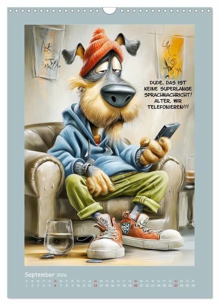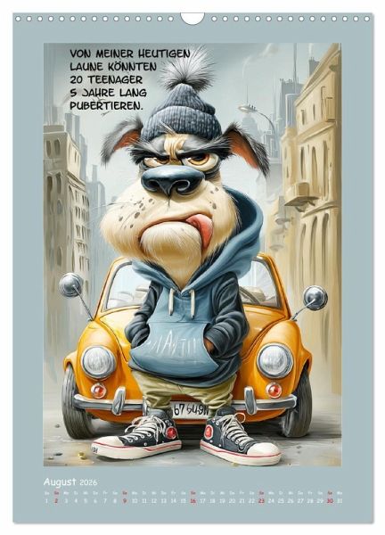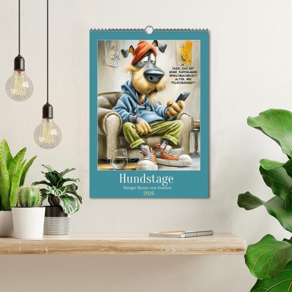 "Hundstage" ist eine witzige Cartoonserie, in der Hunde den menschlichen Alltagswahnsinn auf den Punkt bringen - mit einem Hauch Verzweiflung und einem Schuss Straßenstaub. Jede Illustration wurde mit Hilfe von KI erschaffen und zeigt Hunde im Street-Style, die sich selbst und die Welt um sie herum nicht mehr ganz so ernst nehmen. Der Look: ein bisschen vergammelt, etwas zu cool, aber mit erstaunlich viel Gefühl für den nächsten bissigen Spruch. Ein Kalender für alle, die lieber über das Leben lachen, bevor es sie anknurrt.
