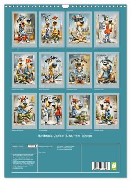 QUALITÄT - Hochwertiger Fotokalender mit 12 wunderschönen Motiven auf lichtbeständigem Bilderdruckpapier, robuste Spiralbindung mit Aufhängebügel.NACHHALTIG - deutliche Abfallreduzierung durch bedarfsgerechte Einzelstückfertigung, umweltfreundliches FSC-zertifiziertes Papier, Produktion in Deutschland, klimabewusste Logistik.PERFEKTES GESCHENK - Kalender für Freunde und Familie, für Kinder und Erwachsene, jung und alt, zu Weihnachten, Geburtstag oder zwischendurch.VIELFALT - Bildkalender in verschiedenen Formaten, z.B. DIN A5, DIN A4, DIN A3 sowie DIN A2. Ob Naturmotiv, Gemälde oder Fotos, ideal für ein persönliches Wohlfühlambiente.Ein urbaner Cartoon-Kalender, in dem Hunde mit zu viel Haltung, zu wenig Schlaf und einer großen Portion Sarkasmus durchs Jahr streunen von Autor(in): Rose Hurley