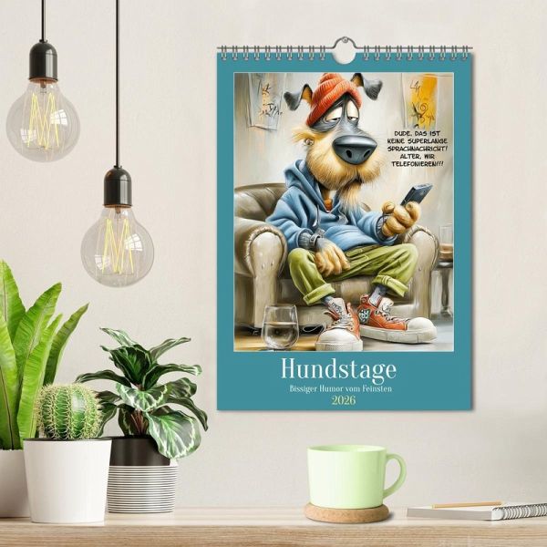 "Hundstage" ist eine witzige Cartoonserie, in der Hunde den menschlichen Alltagswahnsinn auf den Punkt bringen - mit einem Hauch Verzweiflung und einem Schuss Straßenstaub. Jede Illustration wurde mit Hilfe von KI erschaffen und zeigt Hunde im Street-Style, die sich selbst und die Welt um sie herum nicht mehr ganz so ernst nehmen. Der Look: ein bisschen vergammelt, etwas zu cool, aber mit erstaunlich viel Gefühl für den nächsten bissigen Spruch. Ein Kalender für alle, die lieber über das Leben lachen, bevor es sie anknurrt.