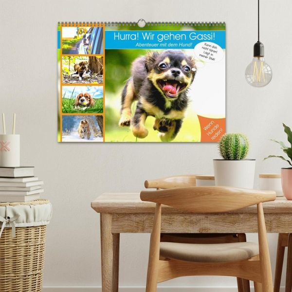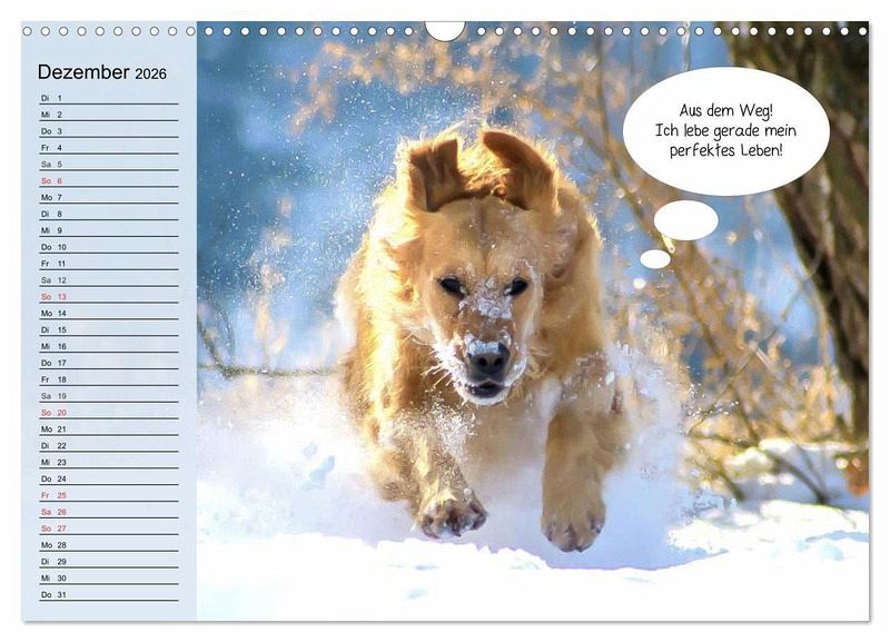 Wir tun es ständig. Wir sprechen mit dem Hund. Das ist auch gut so. Aber was denkt der Hund? Was würde er sagen wenn er reden könnte? In diesem Kalender wurden auf humorvolle Weise die witzigen Gedanken von Hunden festgehalten und sie sorgen wohl bei jedem Hundebesitzer für gute Laune und ein Schmunzeln.