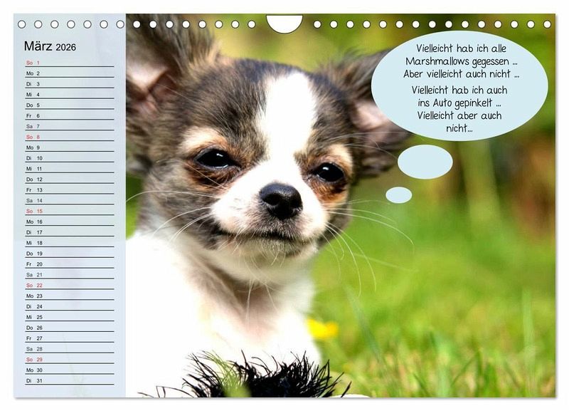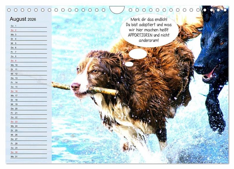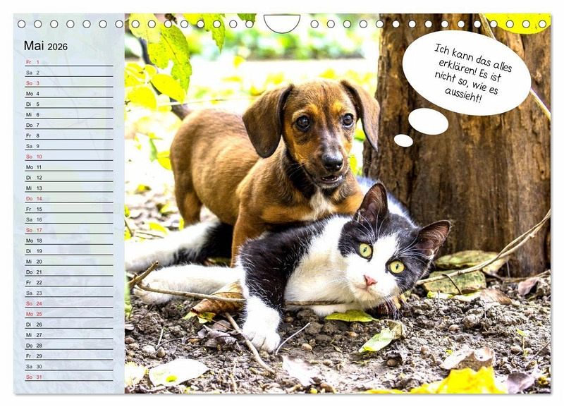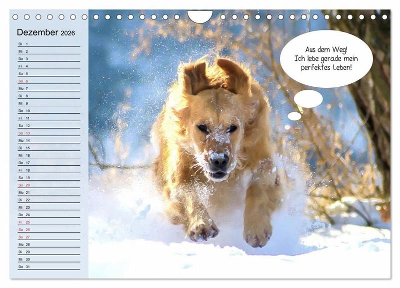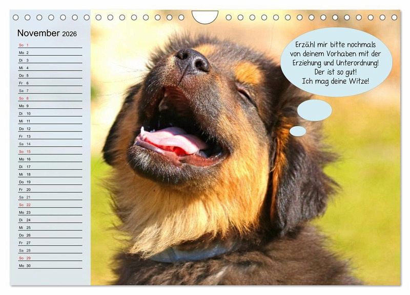 Wir tun es ständig. Wir sprechen mit dem Hund. Das ist auch gut so. Aber was denkt der Hund? Was würde er sagen wenn er reden könnte? In diesem Kalender wurden auf humorvolle Weise die witzigen Gedanken von Hunden festgehalten und sie sorgen wohl bei jedem Hundebesitzer für gute Laune und ein Schmunzeln.