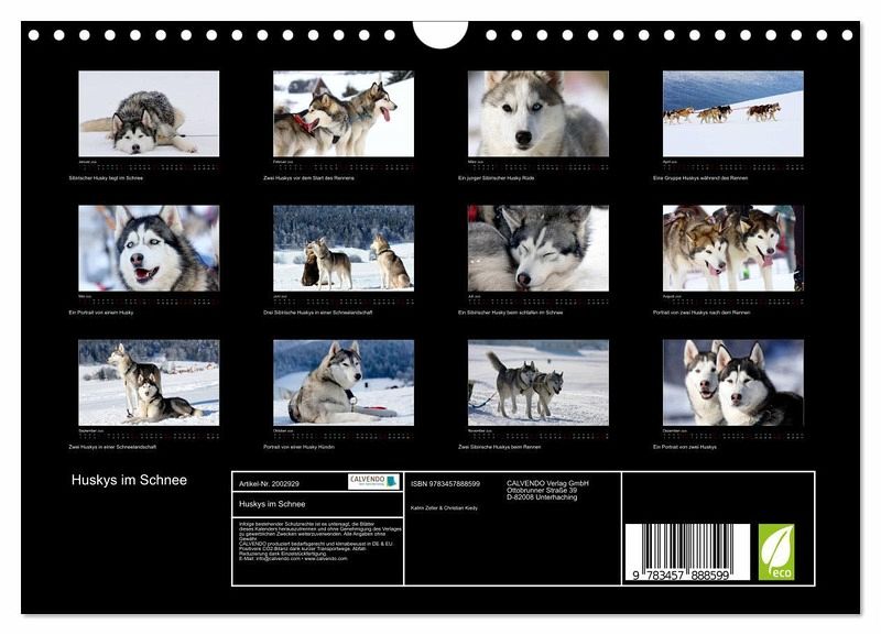 QUALITÄT - Hochwertiger Fotokalender mit 12 wunderschönen Motiven auf lichtbeständigem Bilderdruckpapier, robuste Spiralbindung mit Aufhängebügel.NACHHALTIG - deutliche Abfallreduzierung durch bedarfsgerechte Einzelstückfertigung, umweltfreundliches FSC-zertifiziertes Papier, Produktion in Deutschland, klimabewusste Logistik.PERFEKTES GESCHENK - Kalender für Freunde und Familie, für Kinder und Erwachsene, jung und alt, zu Weihnachten, Geburtstag oder zwischendurch.VIELFALT - Bildkalender in verschiedenen Formaten, z.B. DIN A5, DIN A4, DIN A3 sowie DIN A2. Ob Naturmotiv, Gemälde oder Fotos, ideal für ein persönliches Wohlfühlambiente.Portraits von Sibirischen Huskys im Winter von Autor(in): Katrin Zeller
