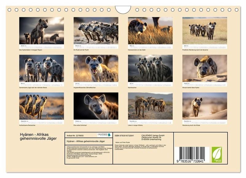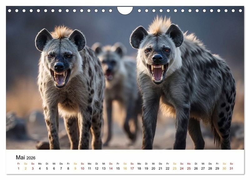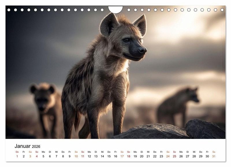 Erleben Sie Hyänen in ihrer natürlichen Umgebung - wild, wachsam, unterschätzt; als Rudel in Bewegung, als Einzelgänger auf Streifzug und als wachsame Wächter ihrer Gemeinschaft. Ob mit gefletschten Zähnen in der Verteidigung, beim Sprint durch die Steppe oder in rauer Berglandschaft - jede Szene verbindet tierische Präsenz mit der Kraft afrikanischer Natur. Gestaltet mit dem Auge fürs Detail werden diese Bilder zu einer Reise in die ungezähmte Wildnis, wobei die grafische Umsetzung im Zusammenspiel klassischer Gestaltung und ausgewählter KI-basierter Methoden erfolgte. Ein visuelles Erlebnis für alle, die sich für das echte Leben der Wildtiere interessieren - jenseits von Klischees, nah an der Realität.