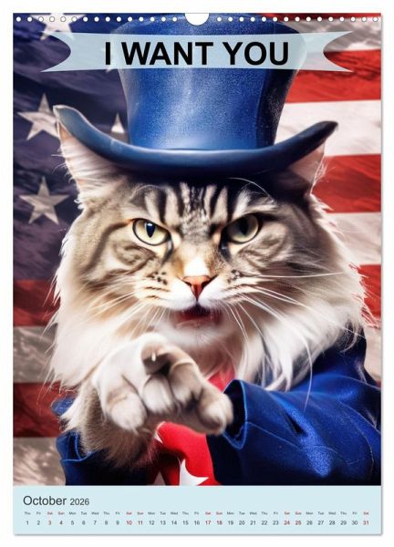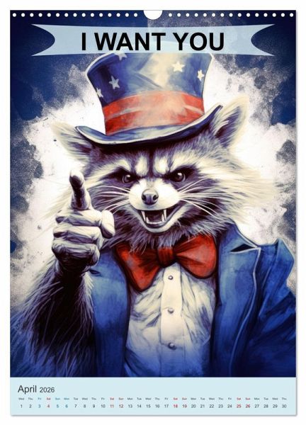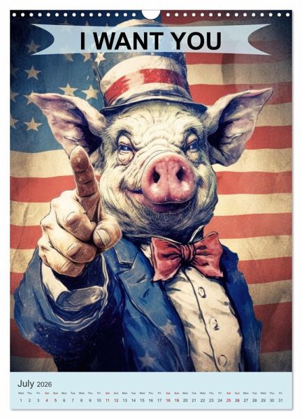 QUALITY - High-quality photo calendar with 12 beautiful images on light-resistant paper, robust spiral binding with hanger.SUSTAINABLE - Significant waste reduction due to print-on-demand production, environmentally friendly FSC-certified paper, produced in the UK, climate-conscious logistical processes.PERFECT GIFT - calendars for friends and family, for children,all ages and all occasions, from Christmas to birthdays and everything in between.LOTS OF CHOICE - Wall calendars in different sizes (DIN A4 and DIN A3), for any topic and personal taste, featuring photography, painting and illustrations.A year of laughter with funny animals in Uncle Sam pose, author: Peter Rübsamen