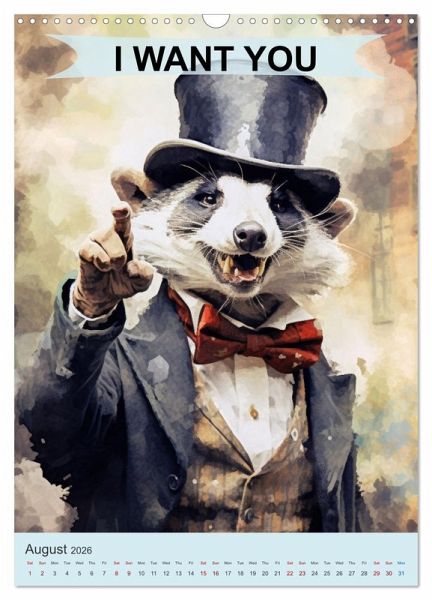 Dive into a year of laughter and patriotic pride with our I want you animals annual calendar. Each month, be greeted by a hilariously posed animal channeling the iconic Uncle Sam, promising to inject a dose of humor into your daily life. From different animals with a finger pointed right at you, these funny animals are on a mission to recruit you into a year of smiles and giggles. Perfect for anyone who adores America and its quirky side, this AI generated calendar is not just a way to keep track of dates but a constant reminder to smile. Ideal as a gift for American lovers, it's a unique…mehr