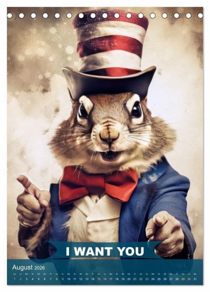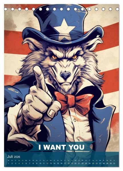 Tauchen Sie ein in die Welt von "I want you im tierischen Design" - dem Jahreskalender, der die ikonische Uncle Sam Pose auf eine Weise neu interpretiert, die Sie garantiert zum Schmunzeln bringt. Mit zwölf mit KI generierten humorvollen und kunstvoll gestalteten Seiten präsentieren wir Ihnen eine einzigartige Sammlung von Tieren, die in die Rolle des berühmten amerikanischen Symbols schlüpfen. Von der majestätischen Pose eines Adlers bis hin zum verschmitzten Grinsen eines Waschbären - jeder Monat überrascht mit einem neuen, liebevoll gestalteten Bild, das die Brücke zwischen Tierreich und amerikanischer Geschichte schlägt. Dieser Kalender ist nicht nur ein Blickfang für Ihre Wand, sondern auch das perfekte Geschenk für alle, die eine besondere Verbindung zu Amerika haben.