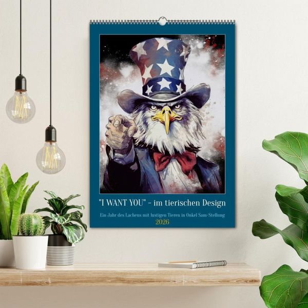 Tauchen Sie ein in die Welt von "I want you im tierischen Design" - dem Jahreskalender, der die ikonische Uncle Sam Pose auf eine Weise neu interpretiert, die Sie garantiert zum Schmunzeln bringt. Mit zwölf mit KI generierten humorvollen und kunstvoll gestalteten Seiten präsentieren wir Ihnen eine einzigartige Sammlung von Tieren, die in die Rolle des berühmten amerikanischen Symbols schlüpfen. Von der majestätischen Pose eines Adlers bis hin zum verschmitzten Grinsen eines Waschbären - jeder Monat überrascht mit einem neuen, liebevoll gestalteten Bild, das die Brücke zwischen Tierreich und amerikanischer Geschichte schlägt. Dieser Kalender ist nicht nur ein Blickfang für Ihre Wand, sondern auch das perfekte Geschenk für alle, die eine besondere Verbindung zu Amerika haben.