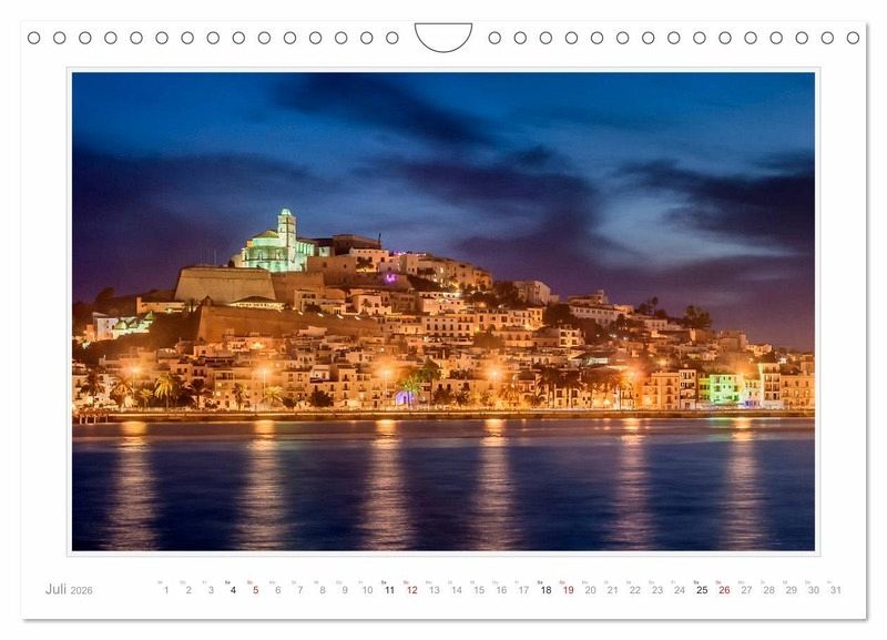 Malerische Buchten, weite Strände, weiße Dörfer und eine romantische Altstadt. Dieser Kalender beinhaltet 12 Fotografien, die in den letzten Jahren auf Ibiza oder Formentera entstanden sind. Fotografiert wurde an den Orten Eivissa (Altstadt), Sant Antoni de Portmany, Playa de Figueretas und Sant Francesc de Formentera.
