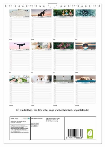 In diesem tollen Wandkalender mit Yoga Motiven können Sie täglich eintragen, wofür Sie an diesem Tag dankbar sind. Sie werden erstaunt sein über den positiven Effekt, den diese Angewohnheit auf ihr Leben haben wird.