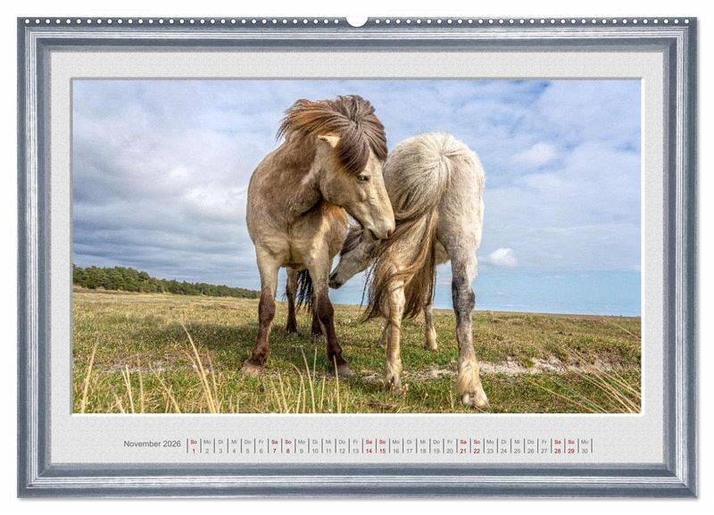 Der Kalender zeigt Isländer auf einer riesengroßen Wiese. Dort verhielten sie sich wie in freier Natur und dies ist den Bildern anzusehen.