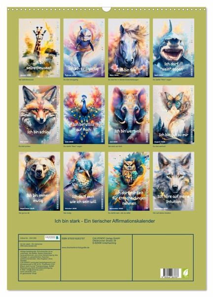 Entdecken Sie die Kraft der Selbstliebe mit dem neuen Affirmationskalender von drachenkind-fotografie. Jeden Monat bestärkt Sie eine inspirierende Botschaft mit einem kunstvollem Tierbild. Diese monatlichen Affirmationen dienen dazu, Ihr Selbstvertrauen zu stärken und positives Denken zu fördern. Ob Sie einen kleinen Stimmungsaufheller brauchen oder einen konstanten Begleiter auf Ihrem Weg zur Selbstverbesserung suchen - dieser Ki erstellte Kalender ist Ihr treuer Gefährte. Lassen Sie sich von der Stärke und der Weisheit der Tiere inspirieren und entdecken Sie die Kraft in Ihnen selbst!